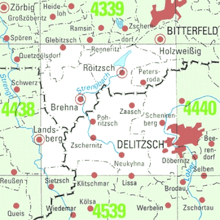 Maßstab 1:25 000, Nomenklatur: 4439, Name des Kartenblatts: Brehna, Auflagejahr: 2023, Blattschnitt: Normalblattschnitt (Preußische Landesaufnahme), Gradabteilungskarte mit 10 min geographischer Länge und 6 min geographischer Breite, Geodätischer Raumbezug: GRS80-Ellipsoid, ...