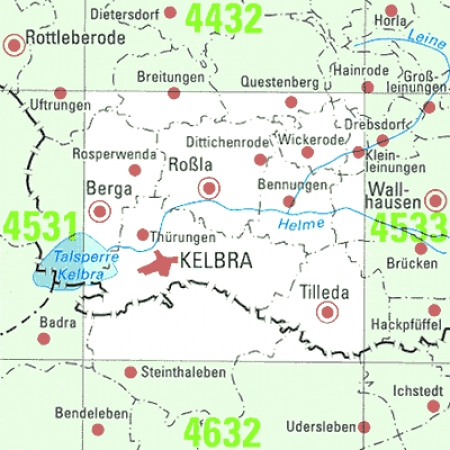 Maßstab 1:25 000, Nomenklatur: 4532, Name des Kartenblatts: Kelbra (Kyffhäuser), Auflagejahr: 2025, Blattschnitt: Normalblattschnitt (Preußische Landesaufnahme), Gradabteilungskarte mit 10 min geographischer Länge und 6 min geographischer Breite, Geodätischer Raumbezug: ...