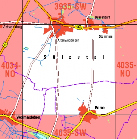 Maßstab 1:10 000, Nomenklatur: 4035-NW, Name des Kartenblatts: Altenweddingen, Auflagejahr: 2022, Blattschnitt: Normalblattschnitt (Preußische Landesaufnahme), Gradabteilungskarte mit 5 min geographischer Länge und 3 min geographischer Breite, Geodätischer Raumbezug: GRS80-Ellipsoid, ...