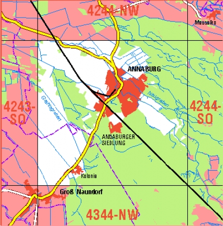 Maßstab 1:10 000, Nomenklatur: 4244-SW, Name des Kartenblatts: Annaburg, Auflagejahr: 2020, Blattschnitt: Normalblattschnitt (Preußische Landesaufnahme), Gradabteilungskarte mit 5 min geographischer Länge und 3 min geographischer Breite, Geodätischer Raumbezug: GRS80-Ellipsoid, ...