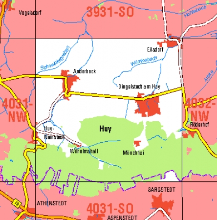 Maßstab 1:10 000, Nomenklatur: 4031-NO, Name des Kartenblatts: Dingelstedt am Huy, Auflagejahr: 2025, Blattschnitt: Normalblattschnitt (Preußische Landesaufnahme), Gradabteilungskarte mit 5 min geographischer Länge und 3 min geographischer Breite, Geodätischer Raumbezug: ...