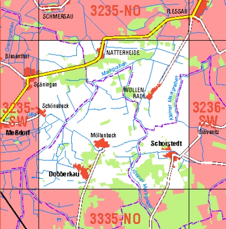 Maßstab 1:10 000, Nomenklatur: 3235-SO, Name des Kartenblatts: Dobberkau, Auflagejahr: 2025, Blattschnitt: Normalblattschnitt (Preußische Landesaufnahme), Gradabteilungskarte mit 5 min geographischer Länge und 3 min geographischer Breite, Geodätischer Raumbezug: GRS80-Ellipsoid, ...