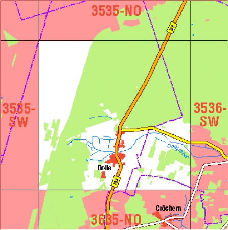Maßstab 1:10 000, Nomenklatur: 3535-SO, Name des Kartenblatts: Dolle, Auflagejahr: 2023, Blattschnitt: Normalblattschnitt (Preußische Landesaufnahme), Gradabteilungskarte mit 5 min geographischer Länge und 3 min geographischer Breite, Geodätischer Raumbezug: GRS80-Ellipsoid, ...