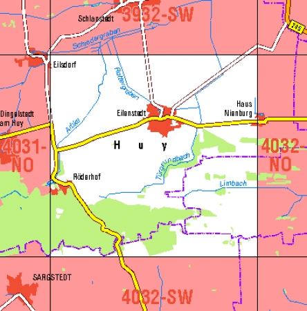 Maßstab 1:10 000, Nomenklatur: 4032-NW, Name des Kartenblatts: Eilenstedt, Auflagejahr: 2021, Blattschnitt: Normalblattschnitt (Preußische Landesaufnahme), Gradabteilungskarte mit 5 min geographischer Länge und 3 min geographischer Breite, Geodätischer Raumbezug: GRS80-Ellipsoid, ...