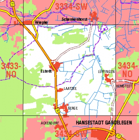 Maßstab 1:10 000, Nomenklatur: 3434-NW, Name des Kartenblatts: Estedt, Auflagejahr: 2023, Blattschnitt: Normalblattschnitt (Preußische Landesaufnahme), Gradabteilungskarte mit 5 min geographischer Länge und 3 min geographischer Breite, Geodätischer Raumbezug: GRS80-Ellipsoid, ...