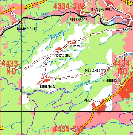Maßstab 1:10 000, Nomenklatur: 4434-NW, Name des Kartenblatts: Annarode, Auflagejahr: 2022, Blattschnitt: Normalblattschnitt (Preußische Landesaufnahme), Gradabteilungskarte mit 5 min geographischer Länge und 3 min geographischer Breite, Geodätischer Raumbezug: GRS80-Ellipsoid, ...
