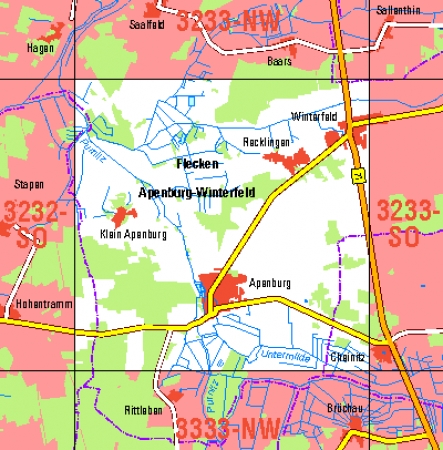 Maßstab 1:10 000, Nomenklatur: 3233-SW, Name des Kartenblatts: Apenburg, Auflagejahr: 2023, Blattschnitt: Normalblattschnitt (Preußische Landesaufnahme), Gradabteilungskarte mit 5 min geographischer Länge und 3 min geographischer Breite, Geodätischer Raumbezug: GRS80-Ellipsoid, ...