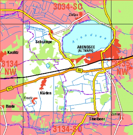 Maßstab 1:10 000, Nomenklatur: 3134-NO, Name des Kartenblatts: Arendsee (Altmark), Auflagejahr: 2024, Blattschnitt: Normalblattschnitt (Preußische Landesaufnahme), Gradabteilungskarte mit 5 min geographischer Länge und 3 min geographischer Breite, Geodätischer Raumbezug: ...