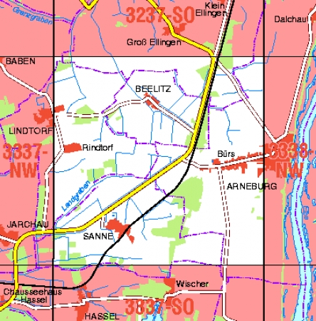 Maßstab 1:10 000, Nomenklatur: 3337-NO, Name des Kartenblatts: Arneburg-Bürs, Auflagejahr: 2022, Blattschnitt: Normalblattschnitt (Preußische Landesaufnahme), Gradabteilungskarte mit 5 min geographischer Länge und 3 min geographischer Breite, Geodätischer Raumbezug: ...