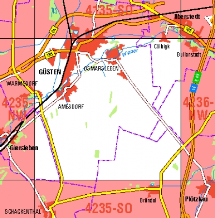 Maßstab 1:10 000, Nomenklatur: 4235-NO, Name des Kartenblatts: Güsten, Auflagejahr: 2022, Blattschnitt: Normalblattschnitt (Preußische Landesaufnahme), Gradabteilungskarte mit 5 min geographischer Länge und 3 min geographischer Breite, Geodätischer Raumbezug: GRS80-Ellipsoid, ...