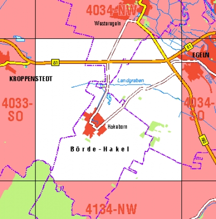 Maßstab 1:10 000, Nomenklatur: 4034-SW, Name des Kartenblatts: Hakeborn, Auflagejahr: 2025, Blattschnitt: Normalblattschnitt (Preußische Landesaufnahme), Gradabteilungskarte mit 5 min geographischer Länge und 3 min geographischer Breite, Geodätischer Raumbezug: GRS80-Ellipsoid, ...