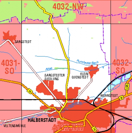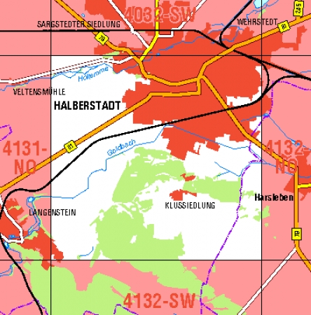 Maßstab 1:10 000, Nomenklatur: 4132-NW, Name des Kartenblatts: Halberstadt, Auflagejahr: 2022, Blattschnitt: Normalblattschnitt (Preußische Landesaufnahme), Gradabteilungskarte mit 5 min geographischer Länge und 3 min geographischer Breite, Geodätischer Raumbezug: GRS80-Ellipsoid, ...