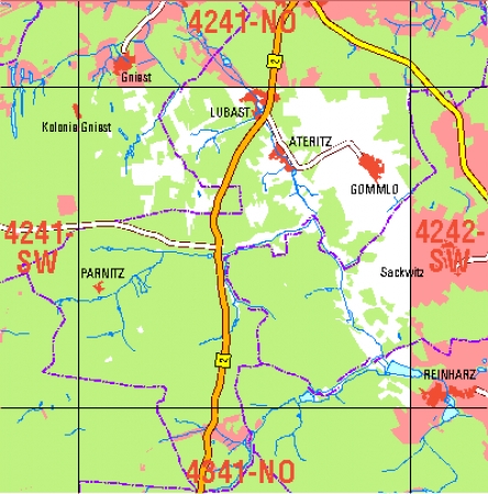 Maßstab 1:10 000, Nomenklatur: 4241-SO, Name des Kartenblatts: Ateritz, Auflagejahr: 2021, Blattschnitt: Normalblattschnitt (Preußische Landesaufnahme), Gradabteilungskarte mit 5 min geographischer Länge und 3 min geographischer Breite, Geodätischer Raumbezug: GRS80-Ellipsoid, ...