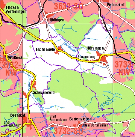 Maßstab 1:10 000, Nomenklatur: 3832-SW, Name des Kartenblatts: Hötensleben, Auflagejahr: 2022, Der Anteil Sachsen-Anhalt (ST) kann bis zur Landesgrenze Niedersachsen (NI) bereitgestellt werden. Das Gebiet zu NI wird als weiße Fläche dargestellt. Blattschnitt: Normalblattschnitt ...