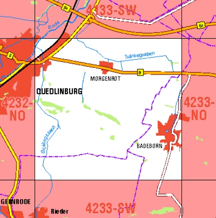 Maßstab 1:10 000, Nomenklatur: 4233-NW, Name des Kartenblatts: Badeborn, Auflagejahr: 2024, Blattschnitt: Normalblattschnitt (Preußische Landesaufnahme), Gradabteilungskarte mit 5 min geographischer Länge und 3 min geographischer Breite, Geodätischer Raumbezug: GRS80-Ellipsoid, ...