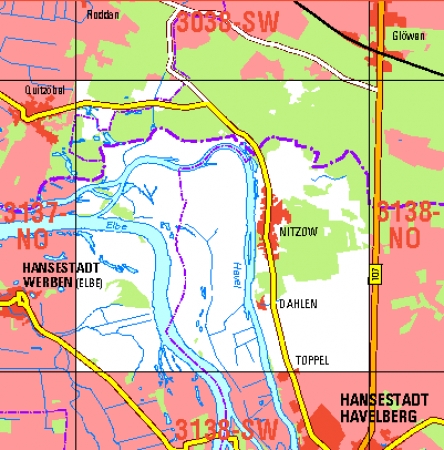Maßstab 1:10 000, Nomenklatur: 3138-NW, Name des Kartenblatts: Nitzow, Auflagejahr: 2022, Blattschnitt: Normalblattschnitt (Preußische Landesaufnahme), Gradabteilungskarte mit 5 min geographischer Länge und 3 min geographischer Breite, Geodätischer Raumbezug: GRS80-Ellipsoid, ...