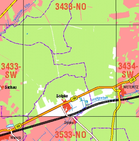 Maßstab 1:10 000, Nomenklatur: 3034-NO, Name des Kartenblatts: Siedlung Prezelle, Auflagejahr: 2022, Der Anteil Sachsen-Anhalt (ST) kann bis zur Landesgrenze Niedersachsen (NI) bereitgestellt werden. Das Gebiet zu NI wird als weiße Fläche dargestellt. Blattschnitt: Normalblattschnitt ...