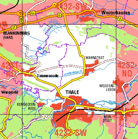 Maßstab 1:10 000, Nomenklatur: 4232-NW, Name des Kartenblatts: Thale N, Auflagejahr: 2020, Blattschnitt: Normalblattschnitt (Preußische Landesaufnahme), Gradabteilungskarte mit 5 min geographischer Länge und 3 min geographischer Breite, Geodätischer Raumbezug: GRS80-Ellipsoid, ...