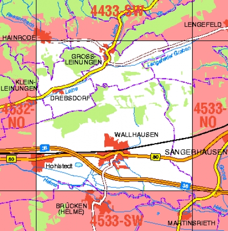 Maßstab 1:10 000, Nomenklatur: 4533-NW, Name des Kartenblatts: Wallhausen, Auflagejahr: 2023, Blattschnitt: Normalblattschnitt (Preußische Landesaufnahme), Gradabteilungskarte mit 5 min geographischer Länge und 3 min geographischer Breite, Geodätischer Raumbezug: GRS80-Ellipsoid, ...