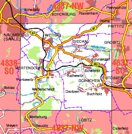 Maßstab 1:10 000, Nomenklatur: 4837-NO, Name des Kartenblatts: Weißenfels S, Auflagejahr: 2025, Blattschnitt: Normalblattschnitt (Preußische Landesaufnahme), Gradabteilungskarte mit 5 min geographischer Länge und 3 min geographischer Breite, Geodätischer Raumbezug: ...