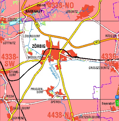 Maßstab 1:10 000, Nomenklatur: 4338-SO, Name des Kartenblatts: Zörbig, Auflagejahr: 2020, Blattschnitt: Normalblattschnitt (Preußische Landesaufnahme), Gradabteilungskarte mit 5 min geographischer Länge und 3 min geographischer Breite, Geodätischer Raumbezug: GRS80-Ellipsoid, ...