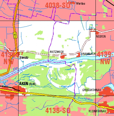 Maßstab 1:10 000, Nomenklatur: 4138-NO, Name des Kartenblatts: Brambach, Auflagejahr: 2024, Blattschnitt: Normalblattschnitt (Preußische Landesaufnahme), Gradabteilungskarte mit 5 min geographischer Länge und 3 min geographischer Breite, Geodätischer Raumbezug: GRS80-Ellipsoid, ...