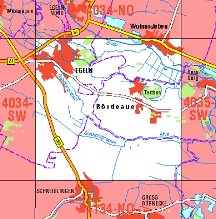 Maßstab 1:10 000, Nomenklatur: 4034-SO, Name des Kartenblatts: Egeln, Auflagejahr: 2022, Blattschnitt: Normalblattschnitt (Preußische Landesaufnahme), Gradabteilungskarte mit 5 min geographischer Länge und 3 min geographischer Breite, Geodätischer Raumbezug: GRS80-Ellipsoid, ...