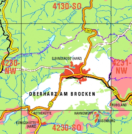 Maßstab 1:10 000, Nomenklatur: 4230-SW, Name des Kartenblatts: Elend, Auflagejahr: 2022, Der Anteil Sachsen-Anhalt (ST) kann bis zur Landesgrenze Niedersachsen (NI) bereitgestellt werden. Das Gebiet zu NI wird als weiße Fläche dargestellt. Blattschnitt: Normalblattschnitt (Preußische ...