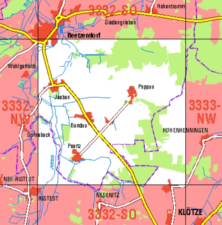 Maßstab 1:10 000, Nomenklatur: 3732-SO, Name des Kartenblatts: Beendorf, Auflagejahr: 2021, Der Anteil Sachsen-Anhalt (ST) kann bis zur Landesgrenze Niedersachsen (NI) bereitgestellt werden. Das Gebiet zu NI wird als weiße Fläche dargestellt. Blattschnitt: Normalblattschnitt ...