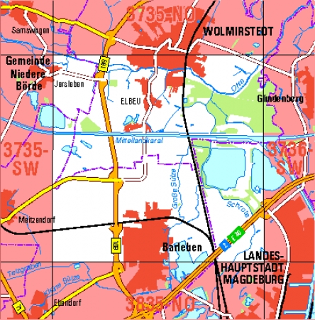 Maßstab 1:10 000, Nomenklatur: 3735-SO, Name des Kartenblatts: Barleben, Auflagejahr: 2025, Blattschnitt: Normalblattschnitt (Preußische Landesaufnahme), Gradabteilungskarte mit 5 min geographischer Länge und 3 min geographischer Breite, Geodätischer Raumbezug: GRS80-Ellipsoid, ...