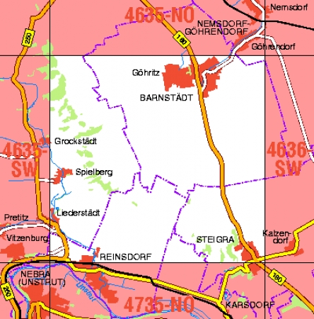 Maßstab 1:10 000, Nomenklatur: 4635-SO, Name des Kartenblatts: Barnstädt, Auflagejahr: 2021, Blattschnitt: Normalblattschnitt (Preußische Landesaufnahme), Gradabteilungskarte mit 5 min geographischer Länge und 3 min geographischer Breite, Geodätischer Raumbezug: GRS80-Ellipsoid, ...