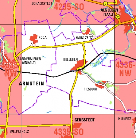 Maßstab 1:10 000, Nomenklatur: 4335-NO, Name des Kartenblatts: Belleben, Auflagejahr: 2025, Blattschnitt: Normalblattschnitt (Preußische Landesaufnahme), Gradabteilungskarte mit 5 min geographischer Länge und 3 min geographischer Breite, Geodätischer Raumbezug: GRS80-Ellipsoid, ...