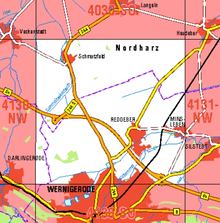 Maßstab 1:10 000, Nomenklatur: 4130-NO, Name des Kartenblatts: Reddeber, Auflagejahr: 2022, Blattschnitt: Normalblattschnitt (Preußische Landesaufnahme), Gradabteilungskarte mit 5 min geographischer Länge und 3 min geographischer Breite, Geodätischer Raumbezug: GRS80-Ellipsoid, ...