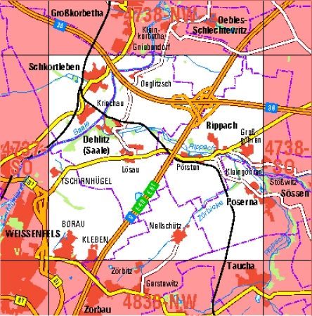 Maßstab 1:10 000, Nomenklatur: 4738-SW, Name des Kartenblatts: Rippach, Auflagejahr: 2022, Blattschnitt: Normalblattschnitt (Preußische Landesaufnahme), Gradabteilungskarte mit 5 min geographischer Länge und 3 min geographischer Breite, Geodätischer Raumbezug: GRS80-Ellipsoid, ...
