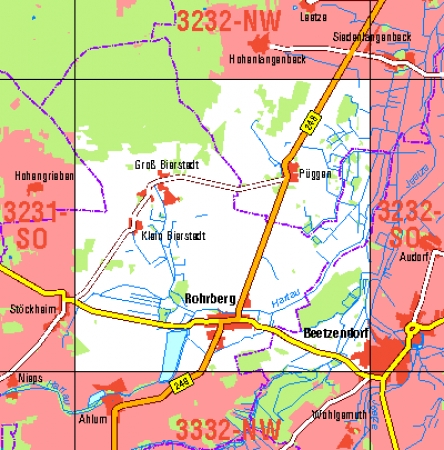 Maßstab 1:10 000, Nomenklatur: 3232-SW, Name des Kartenblatts: Rohrberg, Auflagejahr: 2024, Blattschnitt: Normalblattschnitt (Preußische Landesaufnahme), Gradabteilungskarte mit 5 min geographischer Länge und 3 min geographischer Breite, Geodätischer Raumbezug: GRS80-Ellipsoid, ...