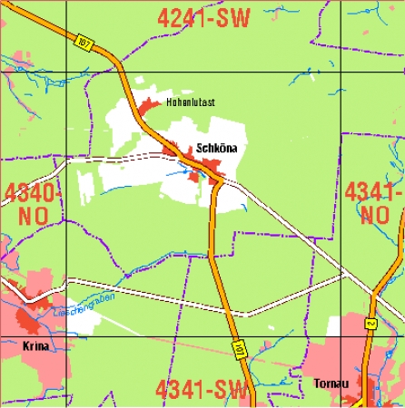 Maßstab 1:10 000, Nomenklatur: 4341-NW, Name des Kartenblatts: Schköna, Auflagejahr: 2023, Blattschnitt: Normalblattschnitt (Preußische Landesaufnahme), Gradabteilungskarte mit 5 min geographischer Länge und 3 min geographischer Breite, Geodätischer Raumbezug: GRS80-Ellipsoid, ...