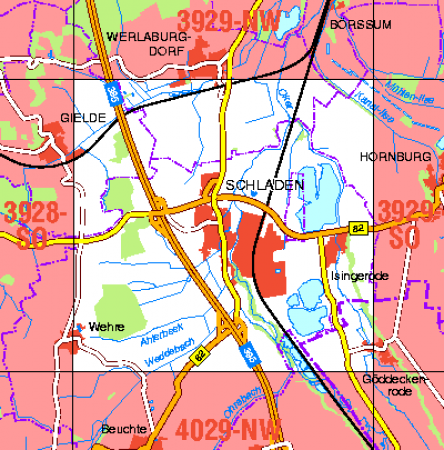 Maßstab 1:10 000, Nomenklatur: 3929-SW, Name des Kartenblatts: Schladen, Auflagejahr: 2022, Der Anteil Sachsen-Anhalt (ST) kann bis zur Landesgrenze Niedersachsen (NI) bereitgestellt werden. Das Gebiet zu NI wird als weiße Fläche dargestellt. Blattschnitt: Normalblattschnitt ...
