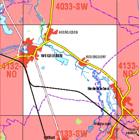 Maßstab 1:10 000, Nomenklatur: 4133-NW, Name des Kartenblatts: Wegeleben, Auflagejahr: 2022, Blattschnitt: Normalblattschnitt (Preußische Landesaufnahme), Gradabteilungskarte mit 5 min geographischer Länge und 3 min geographischer Breite, Geodätischer Raumbezug: GRS80-Ellipsoid, ...