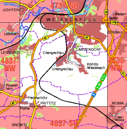Maßstab 1:10 000, Nomenklatur: 4837-NO, Name des Kartenblatts: Weißenfels S, Auflagejahr: 2025, Blattschnitt: Normalblattschnitt (Preußische Landesaufnahme), Gradabteilungskarte mit 5 min geographischer Länge und 3 min geographischer Breite, Geodätischer Raumbezug: ...