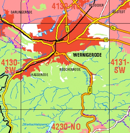 Maßstab 1:10 000, Nomenklatur: 4130-SO, Name des Kartenblatts: Wernigerode, Auflagejahr: 2022, Blattschnitt: Normalblattschnitt (Preußische Landesaufnahme), Gradabteilungskarte mit 5 min geographischer Länge und 3 min geographischer Breite, Geodätischer Raumbezug: GRS80-Ellipsoid, ...