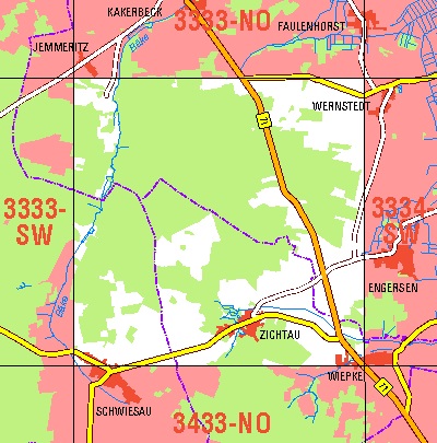 Maßstab 1:10 000, Nomenklatur: 3333-SO, Name des Kartenblatts: Zichtau, Auflagejahr: 2023, Blattschnitt: Normalblattschnitt (Preußische Landesaufnahme), Gradabteilungskarte mit 5 min geographischer Länge und 3 min geographischer Breite, Geodätischer Raumbezug: GRS80-Ellipsoid, ...