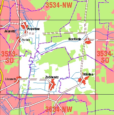 Maßstab 1:10 000, Nomenklatur: 3534-SW, Name des Kartenblatts: Zobbenitz, Auflagejahr: 2023, Blattschnitt: Normalblattschnitt (Preußische Landesaufnahme), Gradabteilungskarte mit 5 min geographischer Länge und 3 min geographischer Breite, Geodätischer Raumbezug: GRS80-Ellipsoid, ...