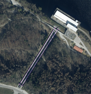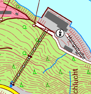(mittig verläuft eine Materialseilbahn)