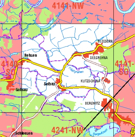 Maßstab 1:10 000, Nomenklatur: 4141-SW, Name des Kartenblatts: Lutherstadt Wittenberg-Seegrehna, Auflagejahr: 2022, Blattschnitt: Normalblattschnitt (Preußische Landesaufnahme), Gradabteilungskarte mit 5 min geographischer Länge und 3 min geographischer Breite, Geodätischer ...