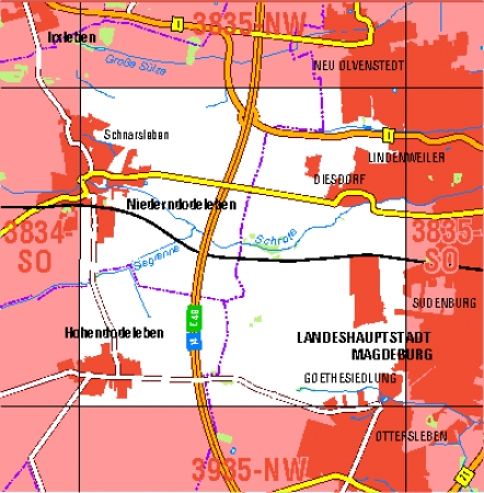 Maßstab 1:10 000, Nomenklatur: 3835-SW, Name des Kartenblatts: Magdeburg-Diesdorf, Auflagejahr: 2024, Blattschnitt: Normalblattschnitt (Preußische Landesaufnahme), Gradabteilungskarte mit 5 min geographischer Länge und 3 min geographischer Breite, Geodätischer Raumbezug: ...