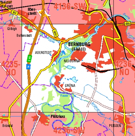 Maßstab 1:10 000, Nomenklatur: 4236-NW, Name des Kartenblatts: Bernburg (Saale), Auflagejahr: 2025, Blattschnitt: Normalblattschnitt (Preußische Landesaufnahme), Gradabteilungskarte mit 5 min geographischer Länge und 3 min geographischer Breite, Geodätischer Raumbezug: GRS80-Ellipsoid, ...