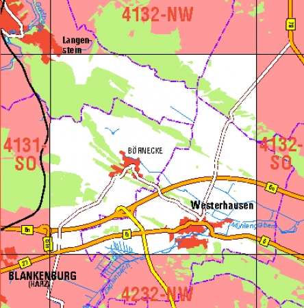Maßstab 1:10 000, Nomenklatur: 4232-NO, Name des Kartenblatts: Welterbestadt Quedlinburg, Auflagejahr: 2020, Blattschnitt: Normalblattschnitt (Preußische Landesaufnahme), Gradabteilungskarte mit 5 min geographischer Länge und 3 min geographischer Breite, Geodätischer Raumbezug: ...