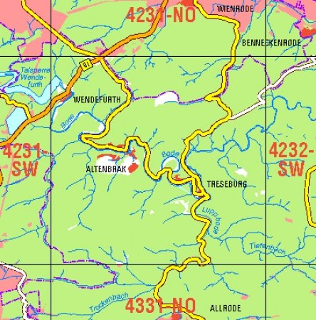 Maßstab 1:10 000, Nomenklatur: 4231-SO, Name des Kartenblatts: Altenbrak, Auflagejahr: 2022, Blattschnitt: Normalblattschnitt (Preußische Landesaufnahme), Gradabteilungskarte mit 5 min geographischer Länge und 3 min geographischer Breite, Geodätischer Raumbezug: GRS80-Ellipsoid, ...
