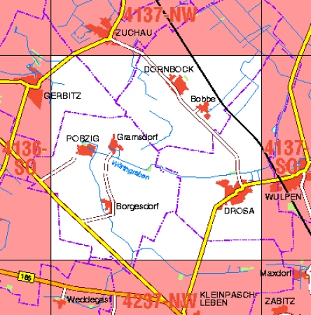 Maßstab 1:10 000, Nomenklatur: 4137-SW, Name des Kartenblatts: Drosa, Auflagejahr: 2022, Blattschnitt: Normalblattschnitt (Preußische Landesaufnahme), Gradabteilungskarte mit 5 min geographischer Länge und 3 min geographischer Breite, Geodätischer Raumbezug: GRS80-Ellipsoid, ...