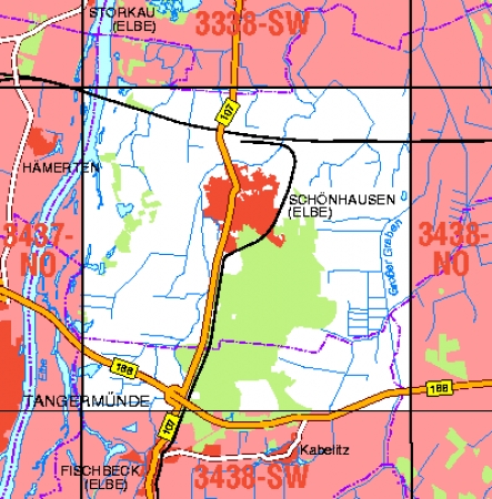 Maßstab 1:10 000, Nomenklatur: 3438-NW, Name des Kartenblatts: Schönhausen (Elbe), Auflagejahr: 2021, Blattschnitt: Normalblattschnitt (Preußische Landesaufnahme), Gradabteilungskarte mit 5 min geographischer Länge und 3 min geographischer Breite, Geodätischer Raumbezug: ...